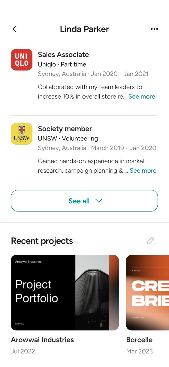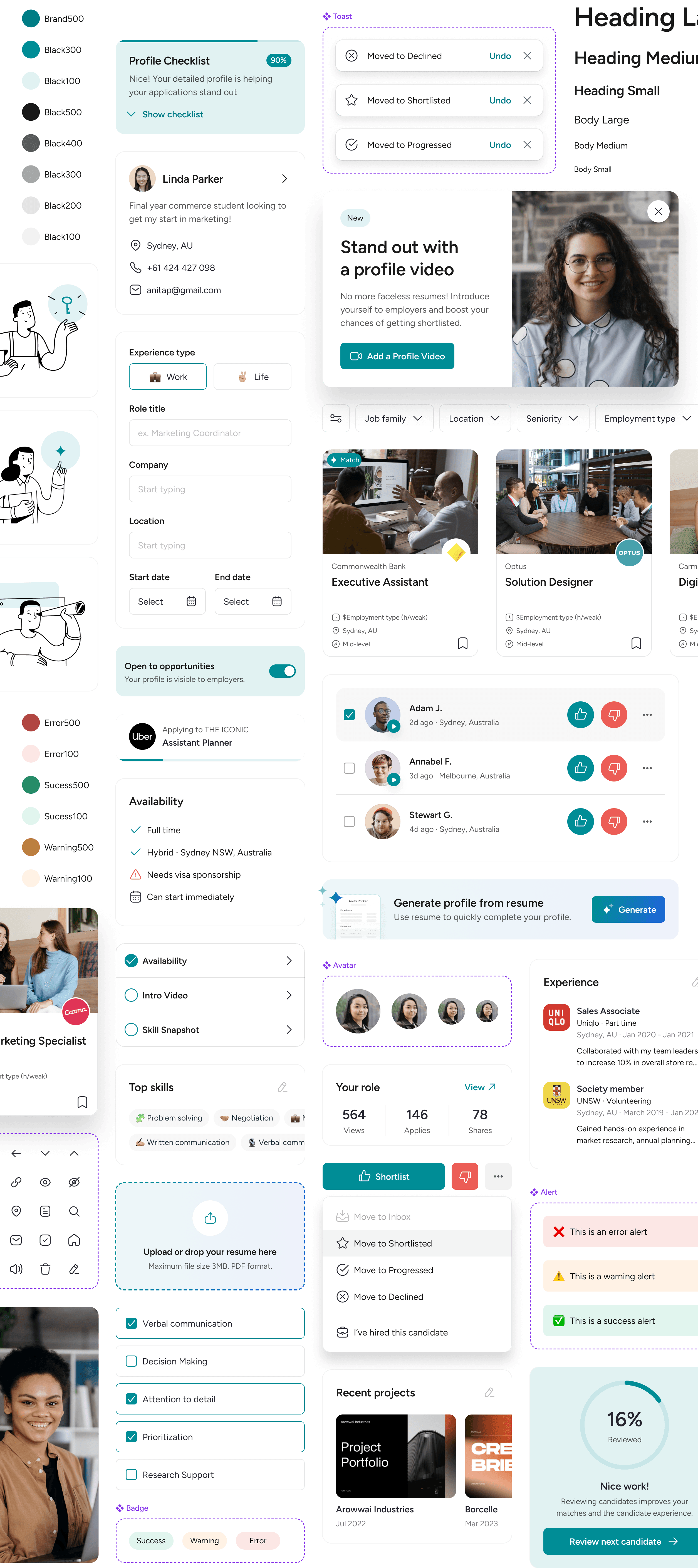 As the only product designer in the team, I worked closely with founders on key initiatives; Increasing activation rates for first-time users, adding personalisation across discovery surfaces, redesigning candidate profiles and application flows, and building collaborative tools to help employers review and hire candidates with more confidence.